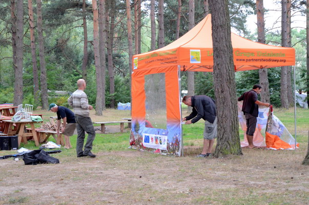 Uczestnicy spłynęli szlakiem kajakowym rzeki Piławy największego dopływu Gwdy. Piława to rzeka niezwykle urokliwa, ale o zmiennym charakterze. Płynie przez przepiękne tereny Drawskiego Parku Krajobrazowego łącząc malownicze jeziora, zagubione wśród bezkresnych lasów. Przecina Zalewy Nadarzyckie, powstałe w wyniku spiętrzenia wód Piławy przez Niemców, którzy tuż przed wybuchem II wojny światowej wybudowali szereg bunkrów, zapór i jazów wchodzących w skład umocnień Wału Pomorskiego. Przed rozpoczęciem spływy spływu uczestnicy wysłuchali wspaniałej prelekcji Pana Dariusza Czerniawskiego na temat historii samego Borne Sulinowa i umocnień Wału Pomorskiego którego rzeka Piława była istotnym elementem. Po prelekcji uczestnicy dojechali autokarem na miejsce rozpoczęcie spływu w okolicach Liszkowa. Pogoda dopisała i po kilkunastu kilometrach uczestnicy dotarli do polana namiotowego nad Zalewami Nadarzyckimi gdzie szybko zbudowano „PROW-incjonalne miasteczko namiotowe”. Posileni smaczną grochówka na szyszkach, uczestnicy wysłuchali plenerowego podsumowania Programu Rozwoju Obszarów Wiejskich, obejrzeli prezentację dobrych praktyk czyli projektów zrealizowanych na terenie LGD Partnerstwo Drawy. O godzinie 20.00 rozpoczęło się wieczorne ognisko z kiełbaskami. W niedziele po śniadaniu na trawie kontynuowano spływ Piławą , a na trasie podziwiano piękno przyrody naszego Pojezierza i zwiedzano umocnienia Wału Pomorskiego. Około godz. 16.00 uczestnicy dotarli do Zdbic skąd przewieziono ich autokarem do Bornego Sulinowa gdzie uroczyści zakończono Gwieździsty Spływ kajakowy Partnerstwa Drawy.