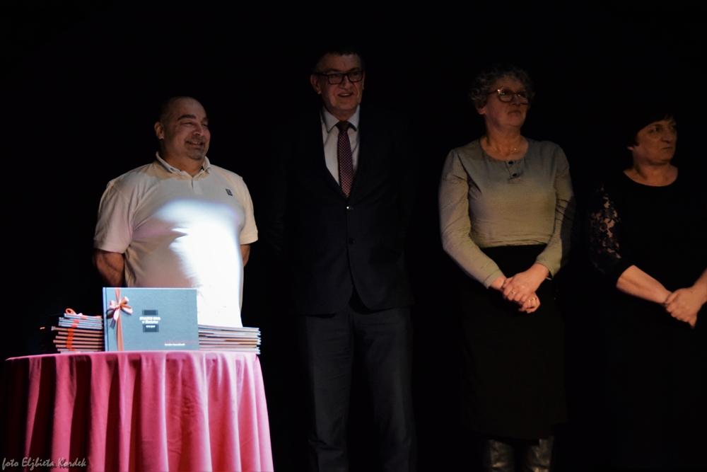 Z tej okazji mieliśmy zaszczyt zaprosić mieszkańców na spotkanie autorskie Jarosława Leszczełowskiego, który spisał dzieje złocienieckich kin oraz wspomnienia ludzi z nimi związanych w książce "Stulecie kina w Złocieńcu". Autor w bardzo ciekawy sposób opowiedział historię X Muzy, od roku 1919/20 aż do współczesności. W książce nie zabrakło również wspomnień pracowników kina Mewa, a także widzów, którzy od początku jego powstania byli z nim związani. Po prezentacji na scenę wyszli pracownicy kina oraz współtwórcy książki - każdy z nich dostał swój pamiątkowy egzemplarz publikacji. Pozostali mogli nabyć książkę w kasie kina.