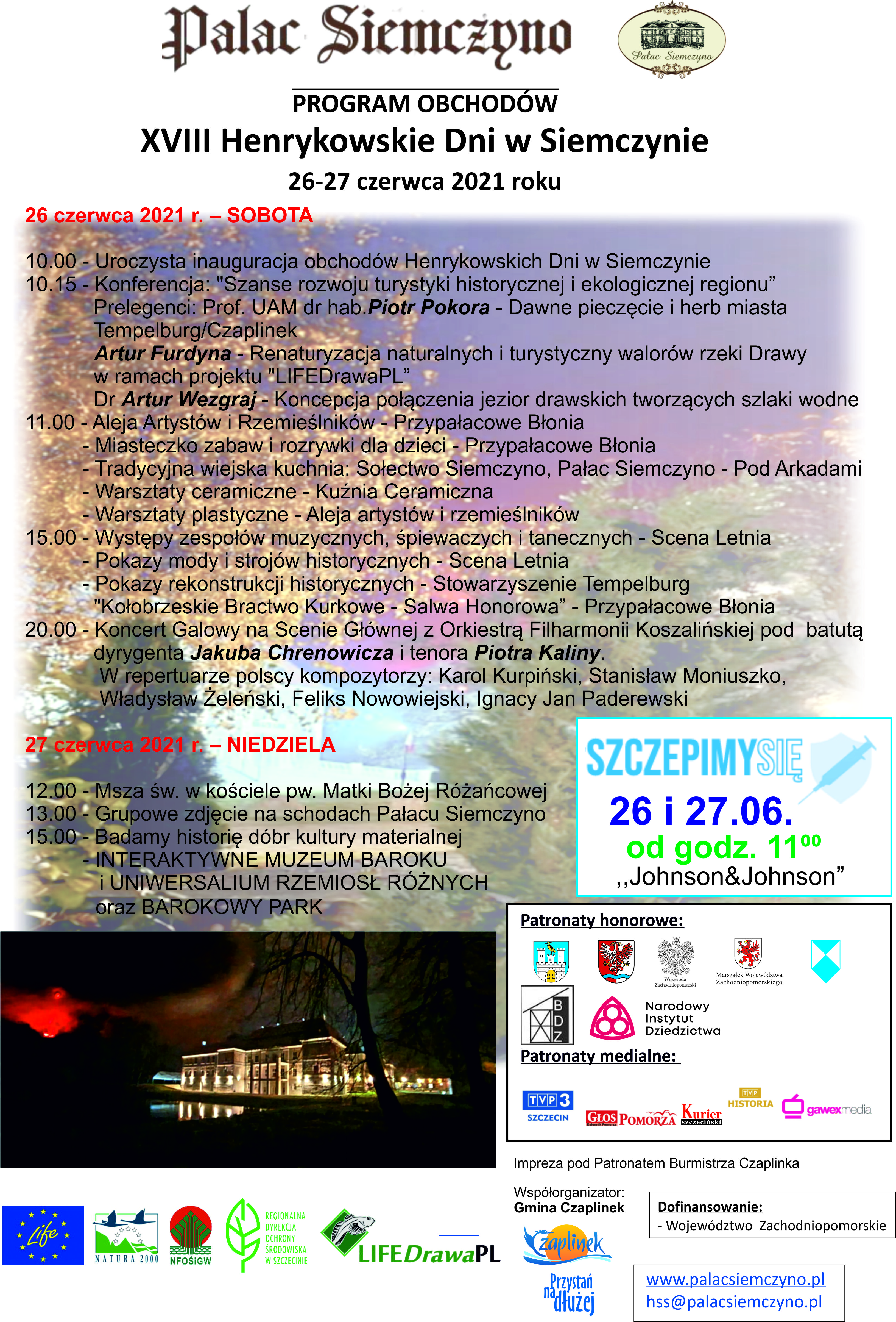 Pałac Siemczyno zaprasza na XVIII Dni Henrykowskie w dniach 26-27 czerwca 2021 r. W załączeniu Program. W imieniu organizatorów zapraszamy :).
