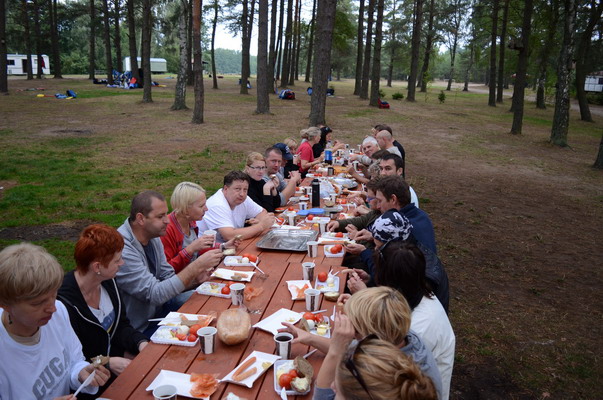 Uczestnicy spłynęli szlakiem kajakowym rzeki Piławy największego dopływu Gwdy. Piława to rzeka niezwykle urokliwa, ale o zmiennym charakterze. Płynie przez przepiękne tereny Drawskiego Parku Krajobrazowego łącząc malownicze jeziora, zagubione wśród bezkresnych lasów. Przecina Zalewy Nadarzyckie, powstałe w wyniku spiętrzenia wód Piławy przez Niemców, którzy tuż przed wybuchem II wojny światowej wybudowali szereg bunkrów, zapór i jazów wchodzących w skład umocnień Wału Pomorskiego. Przed rozpoczęciem spływy spływu uczestnicy wysłuchali wspaniałej prelekcji Pana Dariusza Czerniawskiego na temat historii samego Borne Sulinowa i umocnień Wału Pomorskiego którego rzeka Piława była istotnym elementem. Po prelekcji uczestnicy dojechali autokarem na miejsce rozpoczęcie spływu w okolicach Liszkowa. Pogoda dopisała i po kilkunastu kilometrach uczestnicy dotarli do polana namiotowego nad Zalewami Nadarzyckimi gdzie szybko zbudowano „PROW-incjonalne miasteczko namiotowe”. Posileni smaczną grochówka na szyszkach, uczestnicy wysłuchali plenerowego podsumowania Programu Rozwoju Obszarów Wiejskich, obejrzeli prezentację dobrych praktyk czyli projektów zrealizowanych na terenie LGD Partnerstwo Drawy. O godzinie 20.00 rozpoczęło się wieczorne ognisko z kiełbaskami. W niedziele po śniadaniu na trawie kontynuowano spływ Piławą , a na trasie podziwiano piękno przyrody naszego Pojezierza i zwiedzano umocnienia Wału Pomorskiego. Około godz. 16.00 uczestnicy dotarli do Zdbic skąd przewieziono ich autokarem do Bornego Sulinowa gdzie uroczyści zakończono Gwieździsty Spływ kajakowy Partnerstwa Drawy.