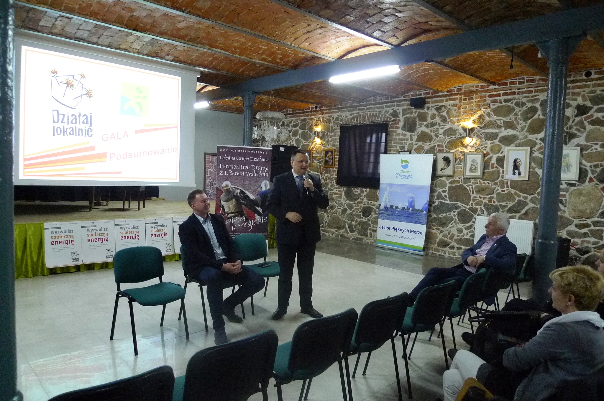 Na uroczystość przybyli zarówno beneficjenci poszczególnych projektów, jak i darczyńcy: swoją obecnością zaszczycili nas: Pan Stanisław Kuczyński - Starosta Drawski, Pan Adam Kośmider - Burmistrz Czaplinka oraz Pan Krzysztof Zacharzewski - Burmistrz Złocieńca i Prezes naszego Stowarzyszenia. Przybyli goście wysłuchali informacji o idei projektu Działaj Lokalnie i głównym darczyńcy Polsko-Amerykańskiej Fundacji Wolności. Następnie zapoznali się z efektami 23 zrealizowanych projektów. Na koniec prezentacji wspaniałych projektów, które przyczyniły się do integracji lokalnego społeczeństwa mogliśmy podziwiać rewelacyjny film z realizacji projektu pn.”Drawsko Hollywood”.